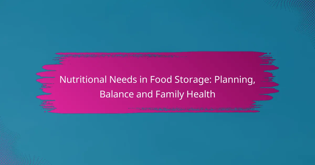 Planning for nutritional needs in food storage involves understanding dietary requirements, organizing food inventory, and setting guidelines for storage duration. By taking these steps, families can ensure they have balanced meals that support health over time.